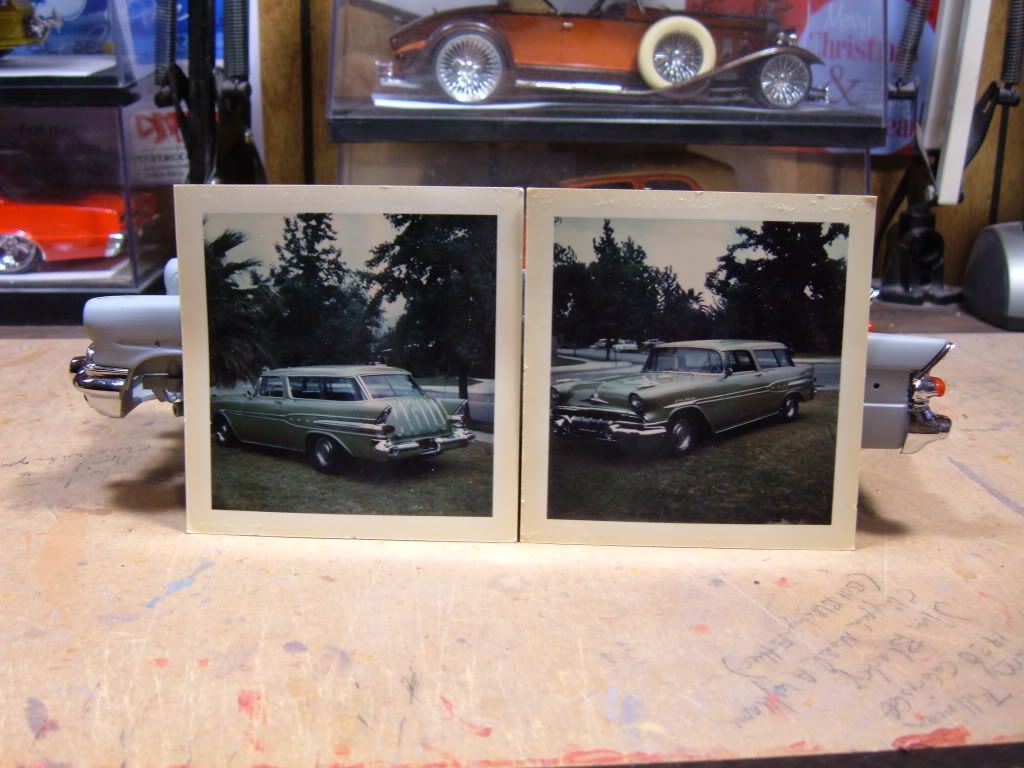 The beginning pics are of the '57 Safari I owned and resto-rodded in the early to mid 70's. Is that a term rodders still use?? The little pics are the originals. Funny looking now. High techest that we had then, but ancient today.